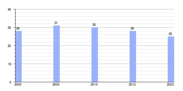 | Gráfica de evolución demográfica de Villarrubín (parroquia) entre 2000 y 2023 |