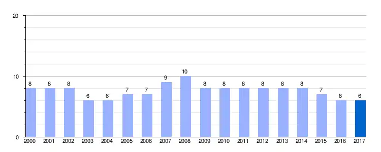 | Gráfica de evolución demográfica de Villasopliz entre 2000 y 2017 |