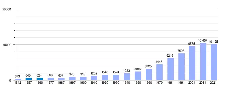 Gráfica de evolución demográfica de Villava / Atarrabia[3] entre 1842 y 2021