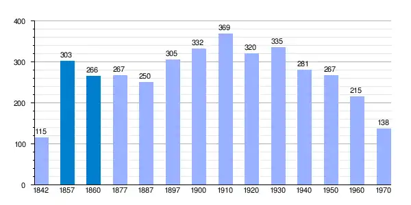 | Gráfica de evolución demográfica de Villaverde Peñahorada[3] entre 1842 y 1970 |