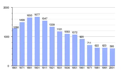 | Gráfica de evolución demográfica de Villetta Barrea entre 1861 y 2001 |