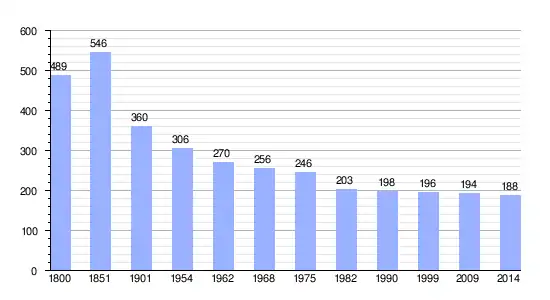 Los datos demográficos contemplados en este gráfico de la comuna de Villiers-le-Pré[4] se han cogido de 1800 a 1999 de la página francesa EHESS/Cassini, y los demás datos de la página del INSEE.[5]