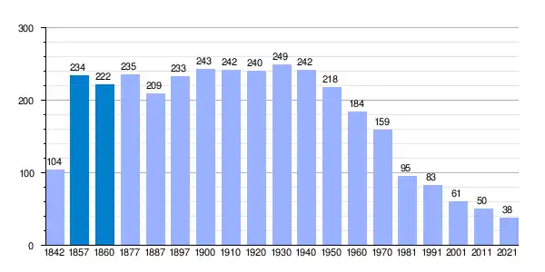 | Gráfica de evolución demográfica de Viloria de Rioja[5] entre 1842 y 2021 |