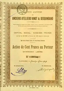 El nombre de la empresa aparece escrito de distintas maneras: Vinot & Deguingand, Vinot-Deguingand,[4][5] o simplemente Vinot desde 1907.