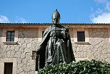 En 1908 el obispo mallorquín Pere Campins celebró el 25º aniversario de la coronación de la virgen en el monasterio de Lluch. Campins fue un gran devoto de esta virgen, por eso ante la iglesia del monasterio, hay una estatua del obispo arrodillado, mirando hacia la entrada del recinto religioso y con las manos en oración. La escultura data de 1920.[7]