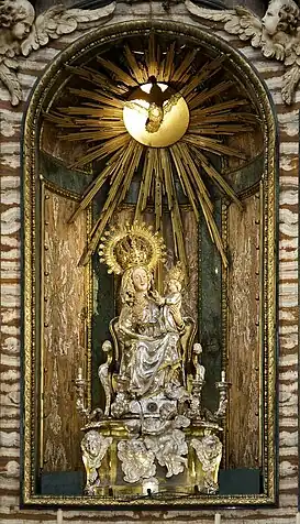 La imagen preside el retablo mayor de la catedral. Se trata de una imagen-sagrario representando a la Virgen María en posición sedente, fechada en el siglo XIV y de estilo gótico. Su rostro y manos están realizados en marfil, mientras que el resto del cuerpo fue recubierto de plata en 1775 por Antonio Vendetti, usando 6,440 gramos del metal. La silla o trono sobre la que aparece sentada fue realizada en 1658 por los plateros madrileños Rafael González Sobera (que también realizó la custodia de la catedral) y Juan Vergara, utilizando casi 38 kilos de plata.
