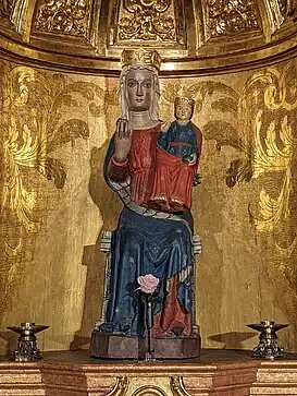 Se trata de una talla románica policromada del siglo XIII que representa a María sedente con el niño Jesús en el brazo izquierdo y mostrando un corazón en la mano derecha. El cuerpo de esta imagen estuvo oculto durante siglos por ropajes, por la moda que había de vestir a las Vírgenes, hasta que una restauración en la década de 1980 devolvió a la talla su esplendor.