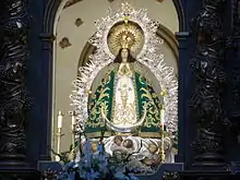 Durante las Fiestas Patronales se instala en la Catedral, en el altar mayor y justo delante del retablo mayor, un monumento consistente en una corona, unas telas a modo de manto y un castillete, que servirán para representar la Asunción de la Virgen a los Cielos durante la celebración de La Salve.