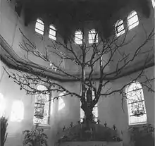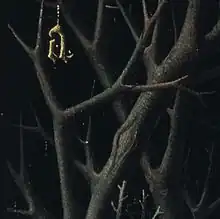 El árbol marchito y espinoso puede ser una representación oscura del bíblico "Árbol del Conocimiento". Los historiadores del arte lo ven como una metáfora del pecado original, y que permanecerá muerto hasta que sea redimido por la segunda venida de Cristo. La iconografía tal vez esté basada en Ezequiel 17:24: "...y todos los árboles del campo sabrán que yo, el Señor, derribé el árbol alto, enaltecí el árbol bajo, sequé el árbol verde, e hice florecer el árbol seco". [22] [23]
