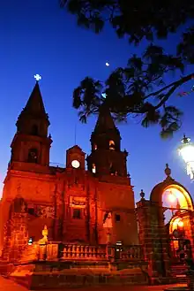 Justo frente a la plaza principal se encuentra la basílica o Santuario mariano para la Virgen de Talpa, que originalmente es un templo católico realizado bajo el estilo románico y neoclásico, que fue ordenado construir por el Presbítero Ramón de Herrera y Cordero clérigo que se estableció en Talpa, y tomó bajo su empeño la construcción de un nuevo edificio y basílica, cuya fecha data desde 1755. Diferentes arreglos y modificaciones fueron realizados al templo en cuyo interior alberga notables vitrales, pinturas, con un retablo principal de ciprés, que aloja la escultura de la virgen de Talpa. Juan Antonio Montenegro lo hizo en 182-1810 y fue el primer capellán propio de Talpa.[5]Basílica de Nuestra Señora del Rosario de Talpa Jal 02.JPG