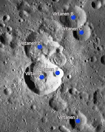 Por convención estos elementos son identificados en los mapas lunares poniendo la letra en el lado del punto medio del cráter que está más cercano a Virtanen.