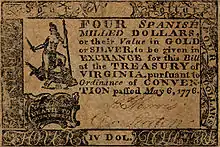 En 1776, Virtus era la figura central en el Escudo de Virginia y la consiguiente bandera del estado, que cuenta con el escudo. El billete de Virginia de cuatro dólares tuvo una representación similar de Virtus en su anverso.