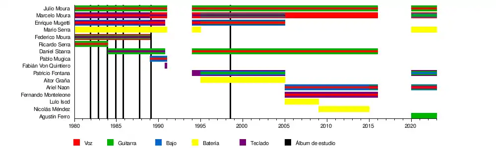 - Enrique Mugetti – bajo (1980–2005); sintetizadores, piano, coros (1980–2005); guitarras (1995–2005)