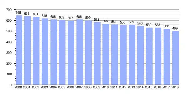 | Gráfica de evolución demográfica de Visantoña[2] entre 2000 y 2018 |