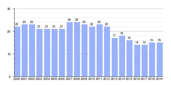 | Gráfica de evolución demográfica de Visantoña (parroquia) entre 2000 y 2019 |