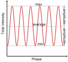 en términos de la amplitud de la envolvente de las oscilaciones de intensidad y la intensidad promedio