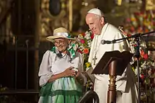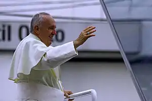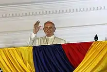 ![]() Francisco saludando a gente en las calles de Quito en su paso por Ecuador | |||||