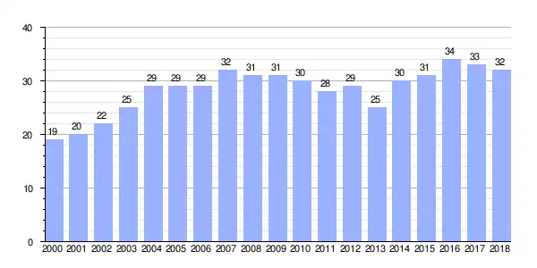 | Gráfica de evolución demográfica de Vista Alegre entre 2000 y 2018 |