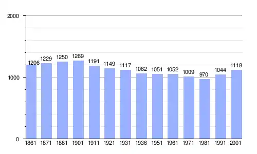 | Gráfica de evolución demográfica de Vistarino entre 1861 y 2001 |