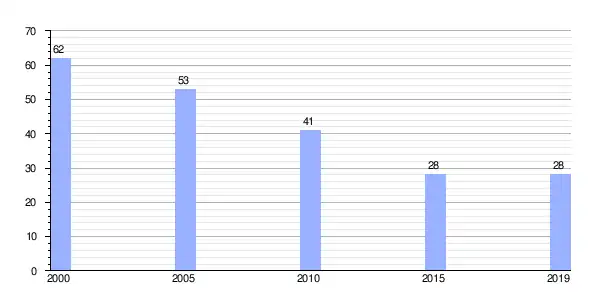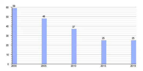 | Gráfica de evolución demográfica de Visuña (parroquia) entre 2000 y 2019 |