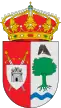 Escudo partido: Primero, en gules, dos espadas de empuñadura de oro y hoja de plata puestas en sotuer, cargadas de escudo, también de plata, y en él castillo donjonado de tres donjones, el central de homenaje, mazonado de sable. Segundo, en plata , árbol arrancado de sinople, surmontado de azor, azorado, y en punta onda de azur. Al timbre corona real cerrada.[5]