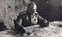 Orden de San Jorge, Tercera Clase (27 de octubre de 1915) "Por acción con éxito en agosto y septiembre de 1915 en el área de Gayvoronki y Sokolusa, incluyendo la toma de unos 17.000 prisioneros"