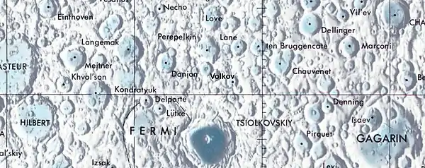 ![]() Cráter Volkov visto desde el Lunar Orbiter 1 | ||