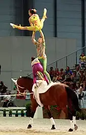 Como deporte, los antecedentes se remontan a la antigua Roma, cuando junto a carreras de caballos y se practicaban coreografías acrobáticas sobre caballos a pleno galope que constituían el programa educacional y de esparcimiento de los jóvenes romanos de alto nivel social.[1]