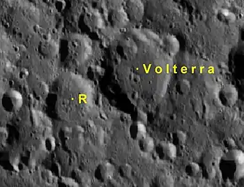 Por convención estos elementos son identificados en los mapas lunares poniendo la letra en el lado del punto medio del cráter que está más cercano a Volterra.