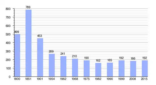 | Gráfica de evolución demográfica de Vosbles-Valfin entre 1800 y 2015 |