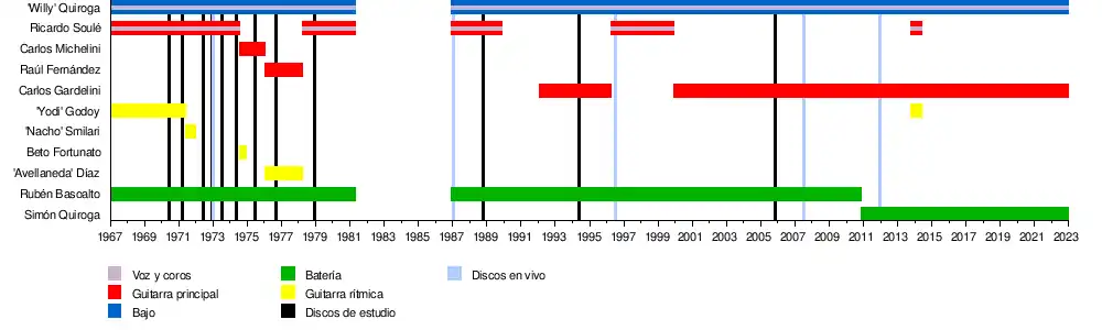 - Willy Quiroga - Bajo, Guitarra, Teclados y voz (1967-1981, 1986-presente).