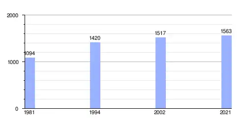 Hasta 2021 la población era de 1563 habitantes,[2] con una densidad de población de 266,7 habitantes por kilómetro cuadrado.[2]