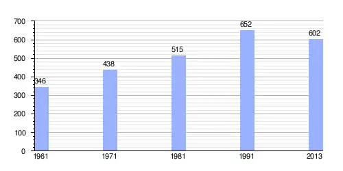 | Gráfica de evolución demográfica de Vrbica entre 1961 y 2013 |
