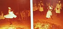 Las reuniones nocturnas en el vudú a menudo son llamadas dans («danza»), reflejando el papel destacado que tiene el baile en tales ceremonias.[140] Su propósito es el de invitar a un loa a que entre en el espacio ritual y posea a uno de los adoradores, a través del cual pueden comunicarse con la congregación.[186] El éxito de tal procedimiento se basa en que se dominen los diferentes actos rituales y en que se obtenga la estética adecuada para complacer a los loa.[186] El proceso puede durar toda la noche.[140] La danza tiene lugar en sentido contrario a las manecillas del reloj alrededor del poto mitan.[187]