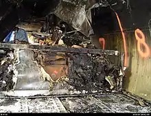 Los investigadores de la Junta Nacional de Seguridad en el Transporte conocida como NTSB por sus siglas en inglés, llegan al lugar del Incidente y ven los daños causados del incendio.