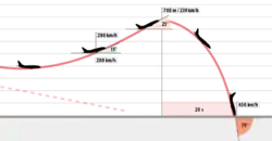 - Después de alcanzar la altitud de 700 metros (2300 pies), la aeronave comenzó una fuerte caída en picado, con un ángulo de cabeceo que alcanzó los -75 ° al final del vuelo (final de la grabación).