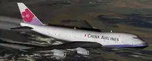 ![]() El 747 de China Airlines involucrado en el accidente, a punto de aterrizar en el Aeropuerto Internacional de Taiwán Taoyuan en 2001. | ||