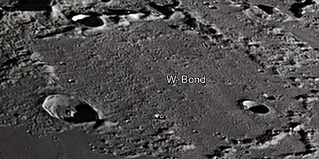 Por convención estos elementos son identificados en los mapas lunares poniendo la letra en el lado del punto medio del cráter que está más cercano a W. Bond.