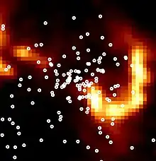 Sea en esta región donde el llamativo prevalence de filamentary la nube estructura vista por ESA Herschel el observatorio Espacial era primero notó.[19] Estos filamentos de nube tienen núcleos "densos" de gasistas embedded dentro les—muchos de los cuales probablemente pueden a gravitationally derrumbamiento y estrellas de forma. El Herschel resultados para esta región, y posteriormente informó resultados para otras regiones que forman estrella, implica que la fragmentación de filamentos de nube molecular es fundamental a la estrella-proceso de formación. El Herschel resultados para W40 y el Aquila Rift, comparado a aquellos para nubes moleculares en el Polaris región, sugiere que estrella-la formación ocurre cuándo la densidad lineal (masa por longitud de unidad) supera un umbral que les hace susceptible a gravitacional instability. Estas cuentas para la estrella alta-índice de formación en W40 y el Aquila Rift, en contraste a la estrella baja-índice de formación en el Polaris nubes. Estos los resultados observacionales complementan simulacros de ordenador de estrella-formación, el cual también enfatiza la función que juego de filamentos de nube molecular en el nacimiento de estrellas.[20]