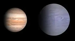 Comparación de tamaños entre WASP-3b y Júpiter.