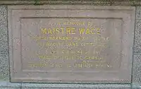 Placa en memoria de Wace en el Vièr Marchi de Saint-Hélier.