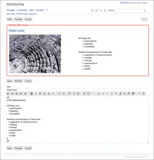 - Caché de páginas. WackoWiki almacenará temporalmente el resultado de convertir la página original a HTML para mejorar la eficiencia.
