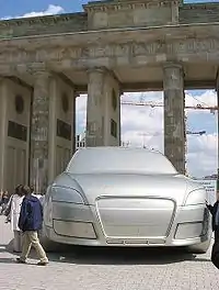 El automóvil (Das automobile) era una escultura diseñada por Audi de 10,2 metros de largo, 3,25 metros de alto y 4,5 metros de ancho con un peso de 10 toneladas.