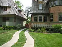 Según los estándares de los suburbios estadounidenses, la casa Gale está bastante cerca de otras estructuras. La casa de la izquierda es otro edificio de Frank Lloyd Wright, la Casa de Thomas H. Gale.