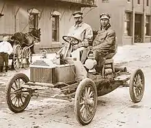 ![]() Walter Marr y Tom Buick (hijo de David Buick) en un prototipo Buick Modelo B de 1904 | ||