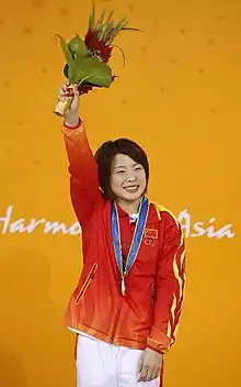 En el Campeonato Mundial de Natación de 2011 celebrado en Shanghái (China) ganó la medalla de oro en los saltos sincronizados desde la plataforma de 10 metros, con una puntuación de 362 puntos, por delante de las australianas y alemanas, siendo su pareja de saltos Chen Ruolin. También ganó la medalla de oro en los Juegos Olímpicos de Río de Janeiro 2016 en la misma prueba.