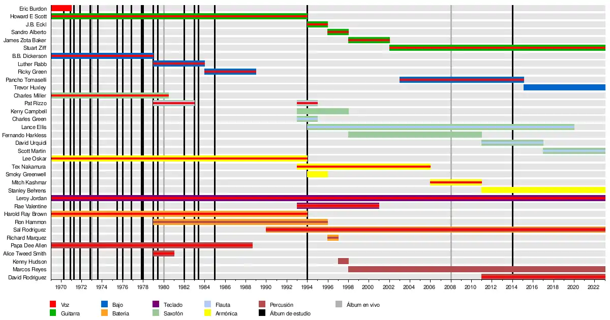 - Leroy «Lonnie» Jordan: teclado, voz (1969-)