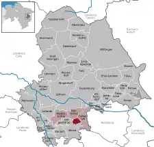 Se encuentra ubicado a poca distancia al oeste de la frontera con el estado de Sajonia-Anhalt, y muy cerca de las ciudades de Brunswick y Wolfsburgo.