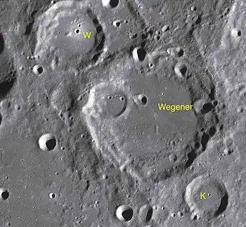 Por convención estos elementos son identificados en los mapas lunares poniendo la letra en el lado del punto medio del cráter que está más cercano a Wegener.