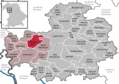 Se encuentra ubicado al oeste del estado, en la región de Franconia Media, a poca distancia al sur de la orilla del río Meno —un afluente derecho del Rin— y al este de la frontera con el estado de Baden-Wurtemberg.